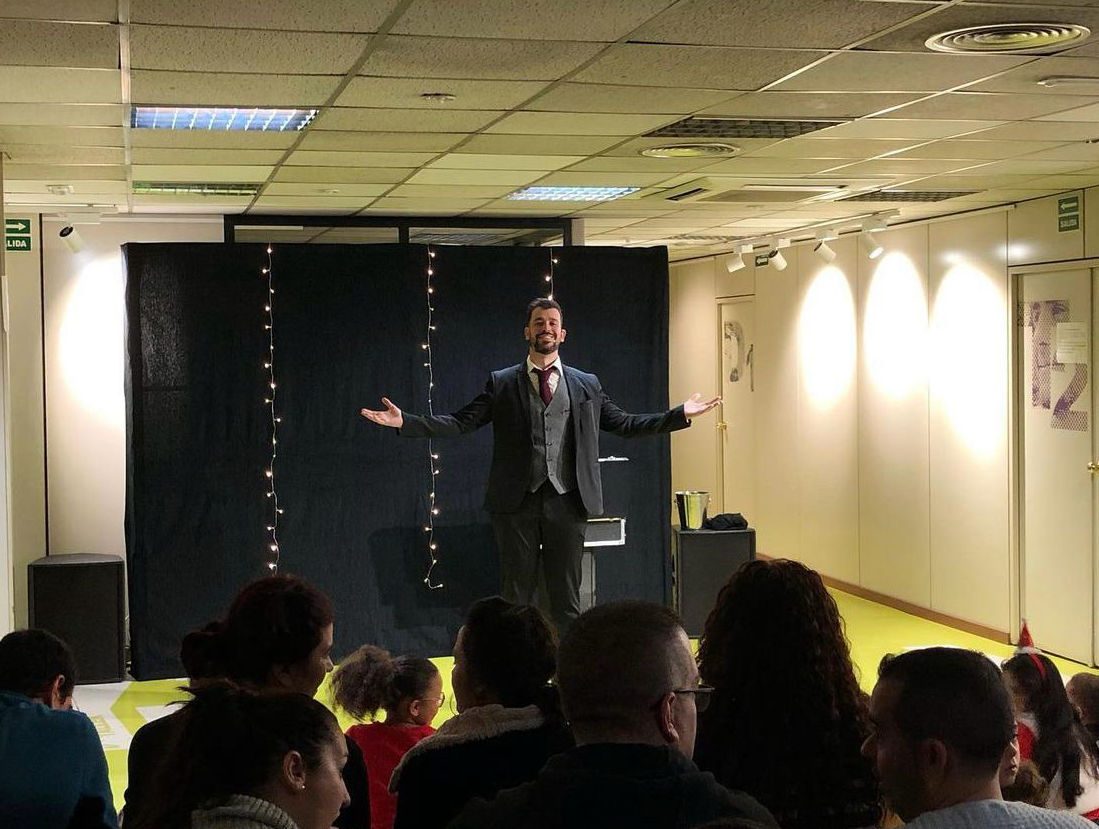 Andrés Madruga es un mago, monologuista y presentador que ha desarrollado una propuesta escénica muy completa, combinando magia, humor y comunicación directa con el público. Con más de una década de experiencia profesional y cientos de actuaciones cada año, ha llevado sus espectáculos a todo tipo de eventos, desde celebraciones familiares hasta teatros, festivales y eventos corporativos.